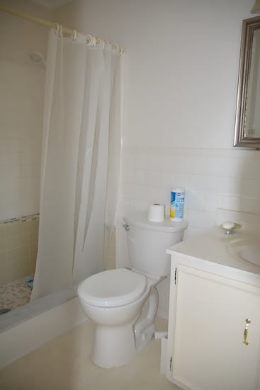 This immaculate bathroom is a true gem. The sleek white cabinetry offers ample storage space, allowing you to keep your bathroom organized and tidy with ease. The sparkling cleanliness of the space is sure to impress, making it the perfect place to relax and rejuvenate. Don't miss out on the opportunity to make this beautiful and functional bathroom yours.