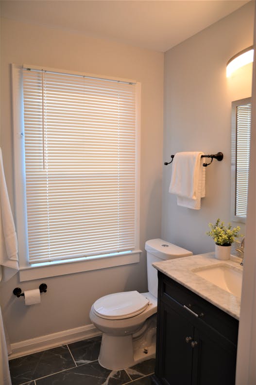The bathrooms have also been tastefully remodeled, with new fixtures and finishes throughout.