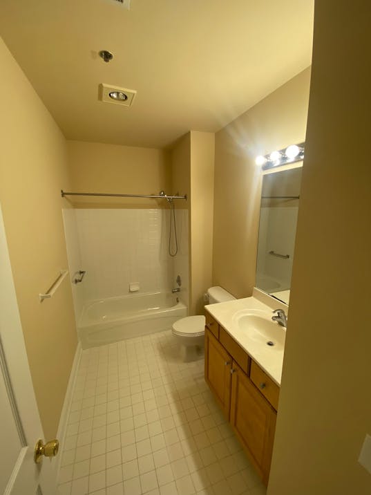 The two generous bedrooms are bright and cheerful, equipped with top-down bottom-up blinds. Each bedroom has direct access to a full bathroom with ceramic tile; one with a tub/shower combo and the other with a walk-in shower.